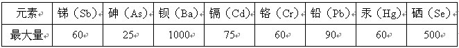 按国际标准中对於艺术涂料中没害风格含铁应高于或在于下列表中回应风格的最大化只有标准。
