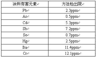 油漆中没有危害的要素的验出限。