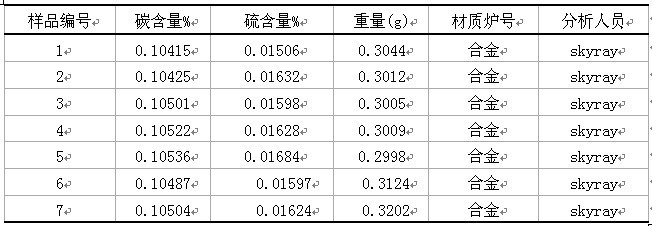一合金类国际标准GBW(E)010136-9901(C%:0.104,S%:0.015)用中频红外碳硫仪168型软件测试成就一下: