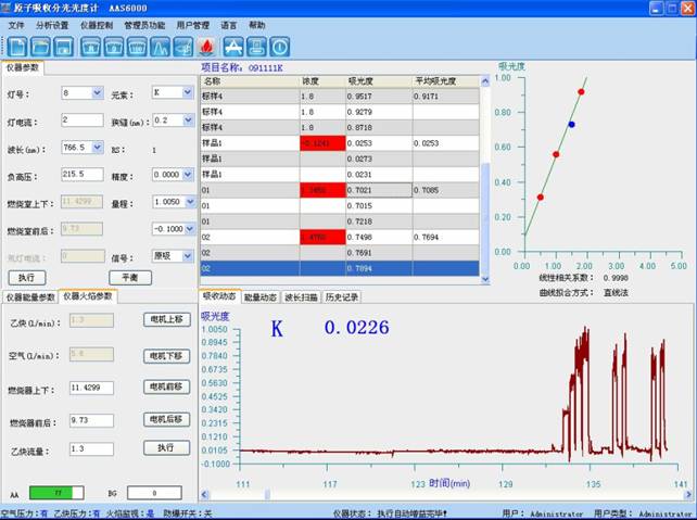 备样测评:于原子核接收入光谱图仪主波长766.5nm处,应用营造氛围-乙炔蓝色火焰,以水调零,勘界试液的吸光度,减去伴同试料的缺口试用氢氧化钠溶液的吸光度,从日常任务曲线下知道相应的钾溶度。