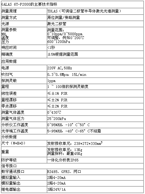 激光在线气体阐发仪(氨气)GALAS 6T-P2000拔取以基于可调谐二极管(TDLAS)激光领受光谱手艺的激光在线气体阐发仪接纳原位探杆式激光阐发法,丈量氨逃逸量。