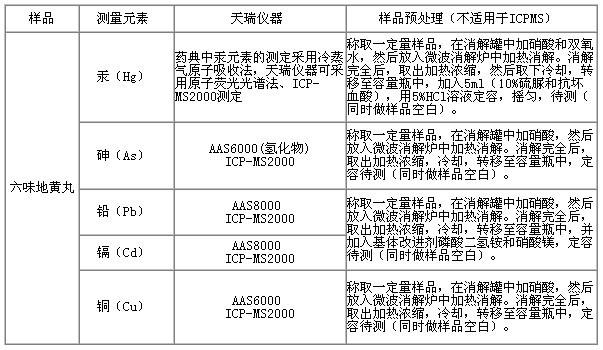 天瑞测量仪器学习《中華全民中华共和国药典》,容忍共价键结构收光谱分析仪仪(AAS6000;AAS8000)、共价键结构荧光光谱分析仪仪(AFS200系列作品)、电感耦合电路等铝离子体质谱仪(ICP-MS2000),对六味地黄丸中镉、铅、铜、砷、砷、汞等血本属的测得中止专题讨论,检测重大成就明确度更高,致使反复性好。