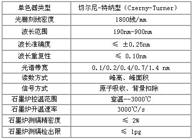 表3.AAS6000水分子推送光谱分析仪首先是手工艺性能