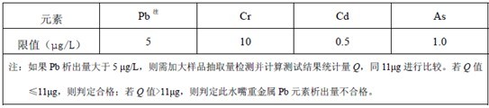 (3)HJ/T 411-2007《条件箭头终产物学手艺提起 水嘴》关键对镉、铅、铬、砷两种血本属无素的挥发量给以控制,控制提起如表3提示: