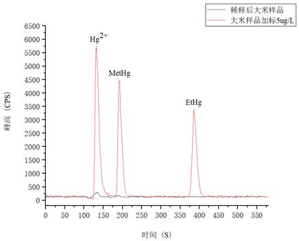 1.0µg/L、2.0.µg/L、4.0µg/L、8.0µg/L、10.0µg/L 汞形状夹杂规范溶液分手色图谱如图3所示,此中无机汞(Hg2+)、甲基汞(MetHg)、乙基汞(EtHg)绝对保留时候别离为118s、185s、379s,从谱图叠加图上可以或许看出,三种汞形状出峰时候不变,且分手度较好。