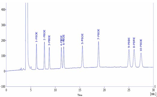 10种多溴联苯醚规范标准夹杂着稀硫酸谱图: