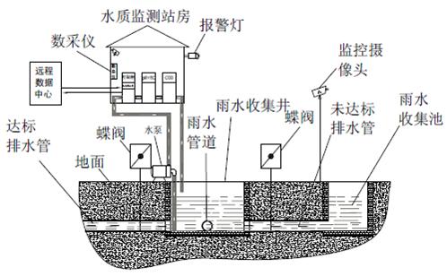 监测体系节制采样单位将水样导入监测室,并启动监测水质的COD、pH、电导率等惯例参数。达标雨水经过过程电控阀门排入市政雨水管网,一旦超标电控阀门封闭,制止雨水排入市政雨水管网,并经过过程水泵将超标雨水泵入企业污水处置体系处置,达标后排放至市政污水管网。同时一切监测数据经过数据收罗单位将数据统计后,由传输装备传输至企业监测中间或环保局,由此实现对雨水排放主动、及时、持续监控。