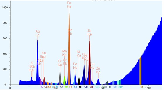 图(tu)4 EDX4500H某大气颗(ke)粒物富(fu)集滤膜X荧光阐发谱图(tu)