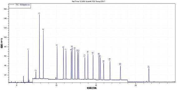 1. 四氯间二甲苯(替换物(wu));2. 蒽-d10(内标物(wu));3. PCB 28;4. PCB 52;5. PCB 101;6. PCB81;7. PCB 77;8. PCB 123;9. PCB 118;10. PCB 114;11. PCB153;12. PCꦛB105;13. PCB 138;14. PCB126;15. PCB167;16. PCB156;17. PCB157;18. PCB180;19. PCB169;20. PCB189;21. PCB 209(内标)